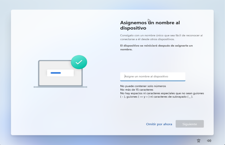 Después de pulsar Siguiente, el equipo se reiniciará otra vez.