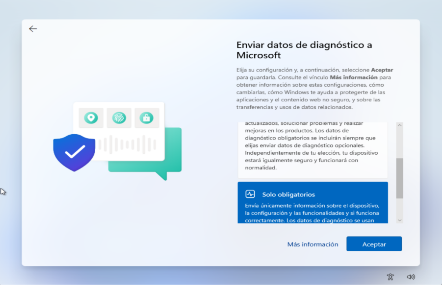 Selecciona Solo obligatorios y pulsa Aceptar.