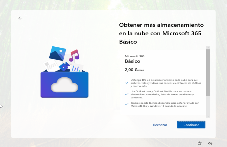 - OneDrive: puede aparecer una oferta de más almacenamiento.