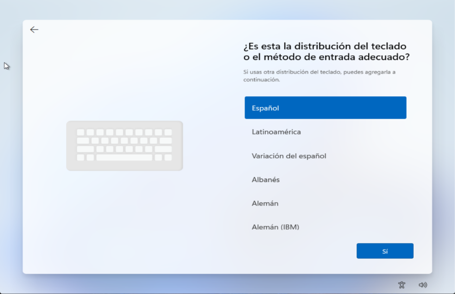 Windows preguntará si quieres añadir otra distribución (ejemplo: teclado inglés).