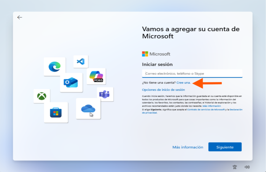 👉 Puedes usar cualquier correo (ej. Gmail) y se convertirá en cuenta Microsoft.