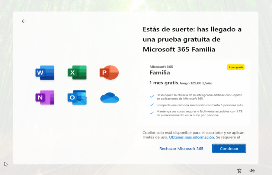 👉 Si no lo quieres, pulsa Rechazar Microsoft 365.